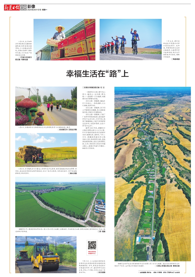 截至2023年底,新疆農(nóng)村公路總里程達到15.58萬公里,所有鄉(xiāng)鎮(zhèn)和具備條件的建制村100%通硬化路、通客車。今年上半年,新疆新改建農(nóng)村公路1940公里。條條農(nóng)村公路,是經(jīng)濟發(fā)展的動脈,是民生改善的見證,讓天山南北的人們走在幸福之路上,感受時代前行的腳步,體驗生活的和美。
