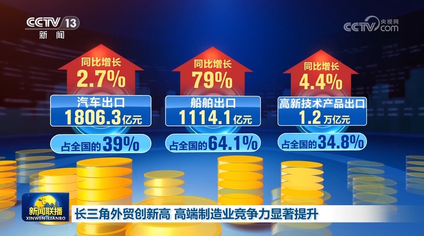 海關(guān)最新數(shù)據(jù)顯示,今年前7個(gè)月,長(zhǎng)三角地區(qū)進(jìn)出口規(guī)模創(chuàng)歷史新高,汽車、船舶、數(shù)控機(jī)床等產(chǎn)品出口亮眼,長(zhǎng)三角地區(qū)高端制造業(yè)國(guó)際競(jìng)爭(zhēng)力加速提升。