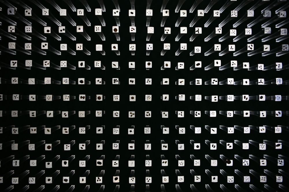 這是8月20日在種子博物館內(nèi)拍攝的亞克力柱種子展示墻。新華社記者辛悅衛(wèi) 攝