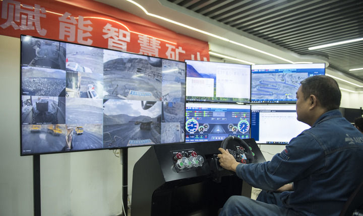 2024年4月11日,技術人員在位于四川省攀枝花市的攀鋼礦業(yè)朱蘭鐵礦智慧管控中心遠程操控無人自動駕駛礦車。新華社記者 張豪夫 攝