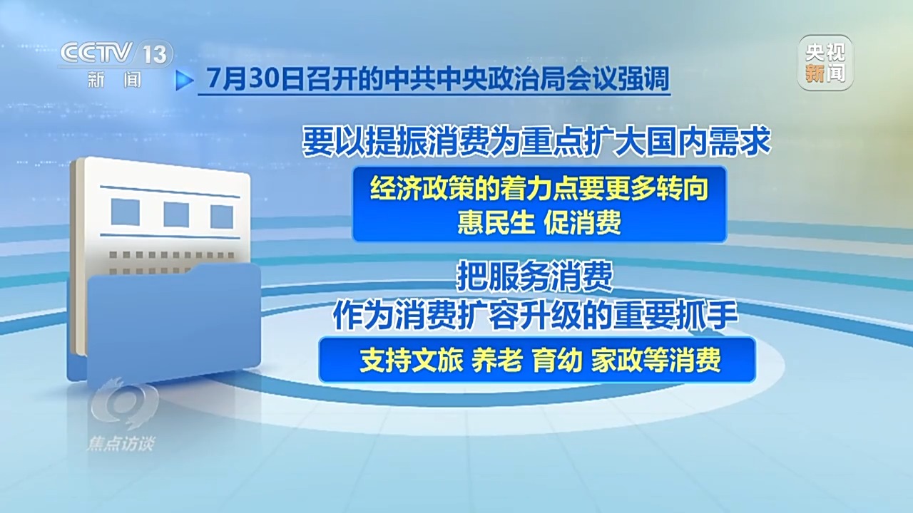 服務(wù)消費(fèi)是釋放消費(fèi)潛力的重要力量。7月30日召開(kāi)的中共中央政治局會(huì)議強(qiáng)調(diào),“要以提振消費(fèi)為重點(diǎn)擴(kuò)大國(guó)內(nèi)需求,經(jīng)濟(jì)政策的著力點(diǎn)要更多轉(zhuǎn)向惠民生、促消費(fèi),把服務(wù)消費(fèi)作為消費(fèi)擴(kuò)容升級(jí)的重要抓手,支持文旅、養(yǎng)老、育幼、家政等消費(fèi)。”國(guó)務(wù)院于8月3日印發(fā)《關(guān)于促進(jìn)服務(wù)消費(fèi)高質(zhì)量發(fā)展的意見(jiàn)》,提出“著力提升服務(wù)品質(zhì)、豐富消費(fèi)場(chǎng)景、優(yōu)化消費(fèi)環(huán)境,以創(chuàng)新激發(fā)服務(wù)消費(fèi)內(nèi)生動(dòng)能,培育服務(wù)消費(fèi)新增長(zhǎng)點(diǎn)”。這是我國(guó)首次專門就服務(wù)消費(fèi)發(fā)展作出系統(tǒng)全面部署的政策文件。