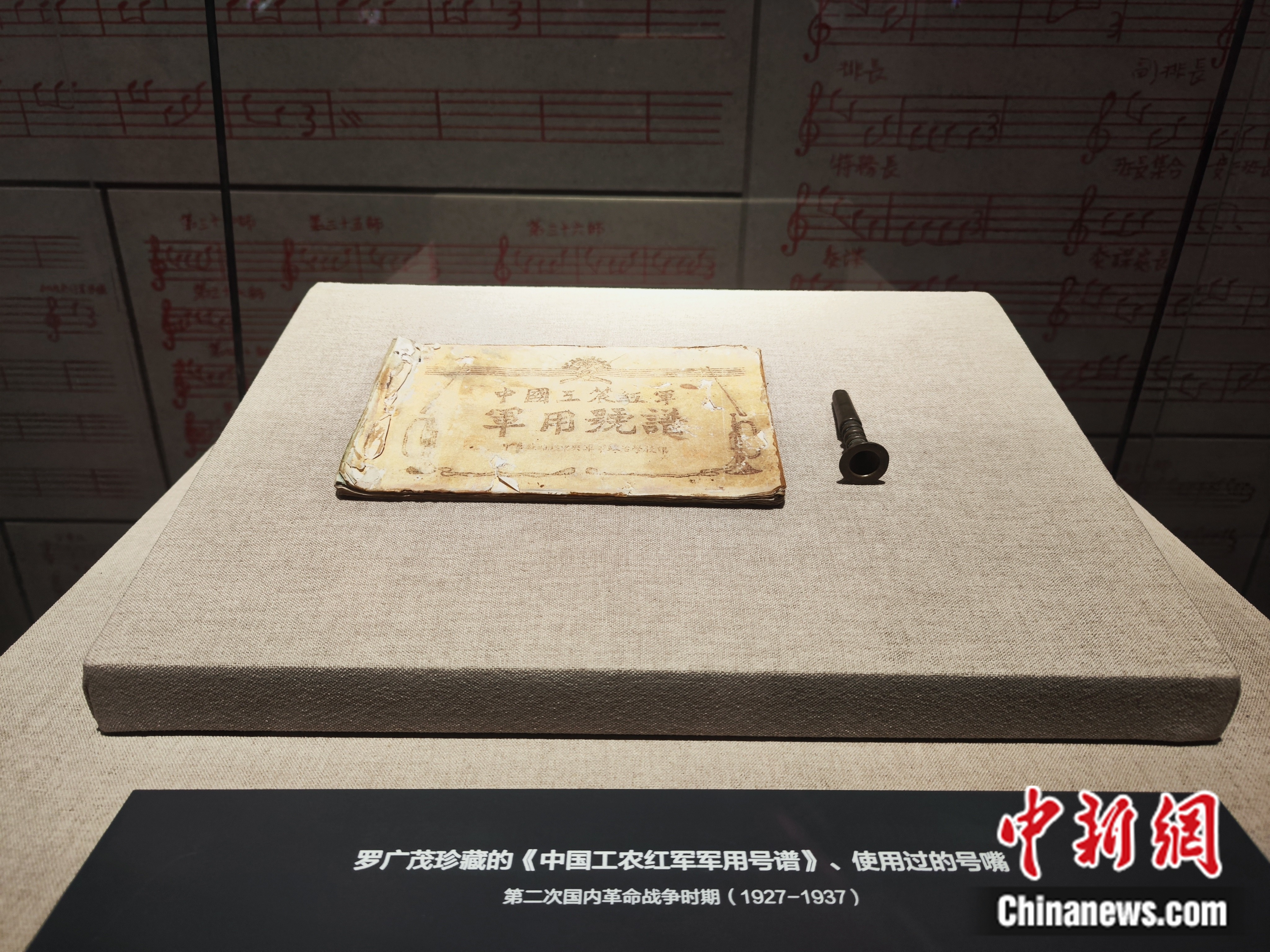 玻璃展柜中,那本用毛邊紙、黑油墨印制而成的《中國(guó)工農(nóng)紅軍軍用號(hào)譜》靜靜躺在那里,滿含歲月的痕跡。