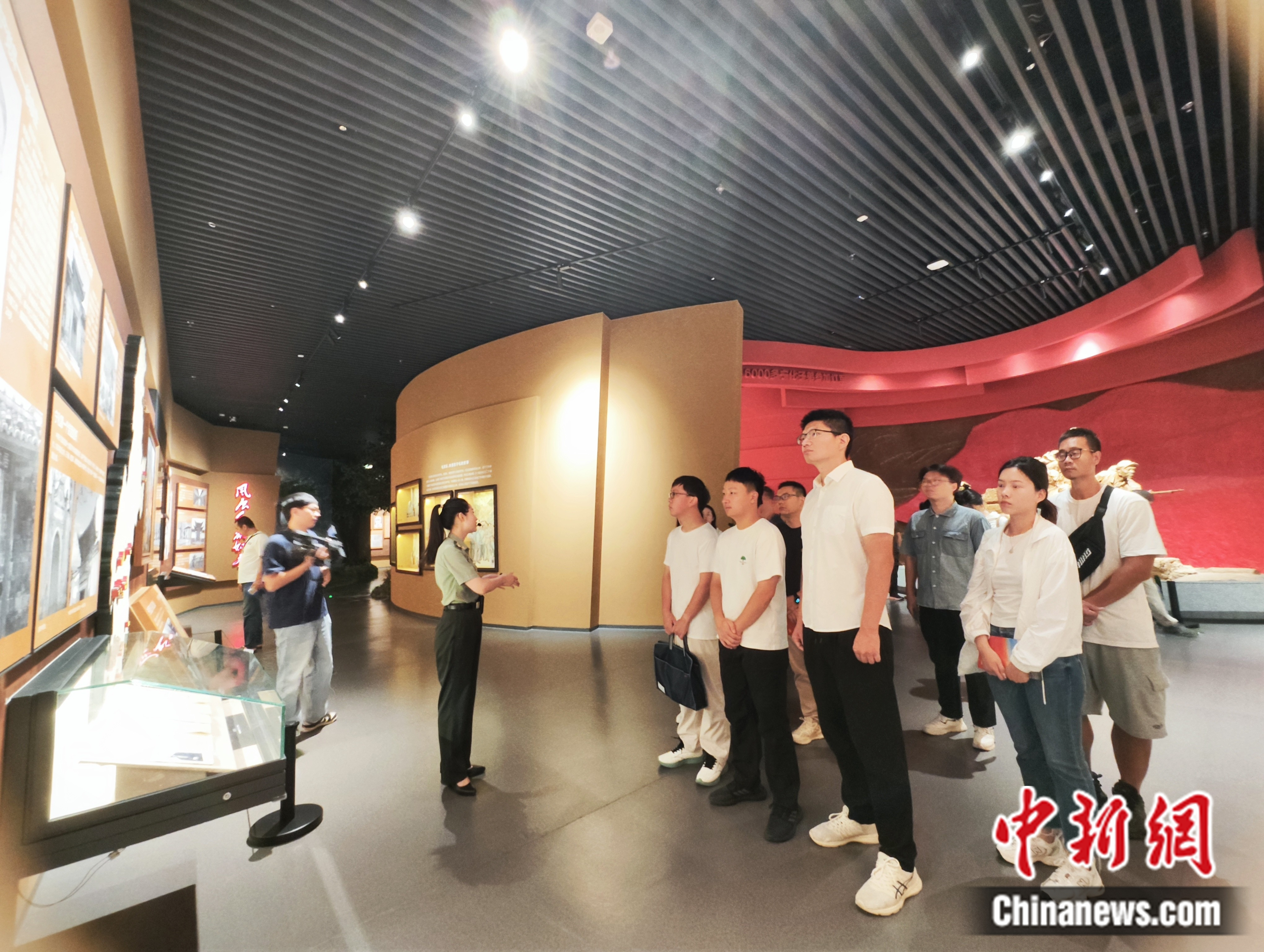 寧化縣長(zhǎng)征精神教育基地內(nèi),講解員向采訪調(diào)研團(tuán)講述歷史。劉越 攝
