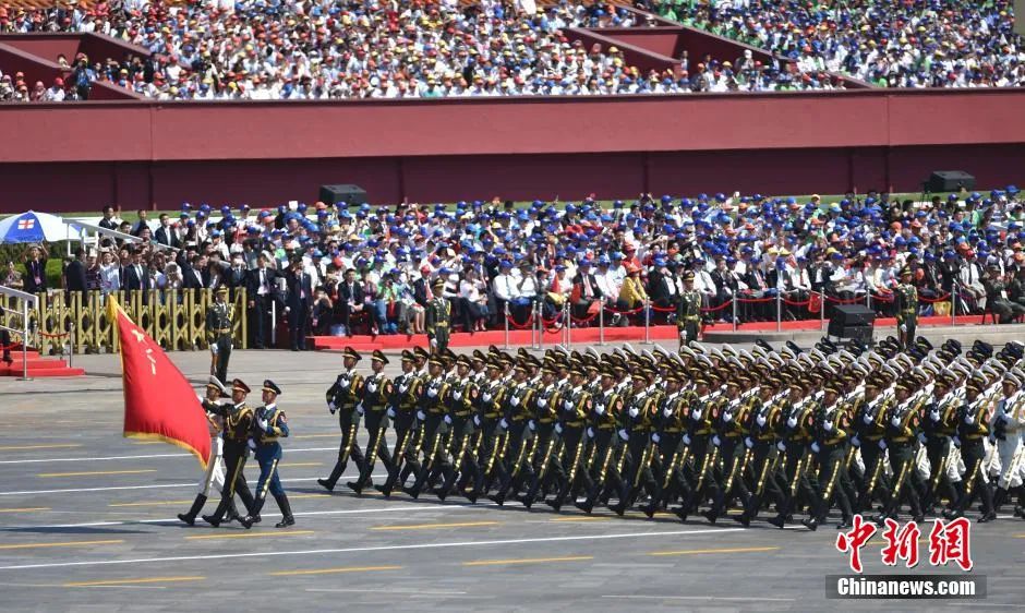 圖為2015年9月3日上午,紀念中國人民抗日戰(zhàn)爭暨世界反法西斯戰(zhàn)爭勝利70周年大會上,三軍儀仗隊通過天安門廣場。