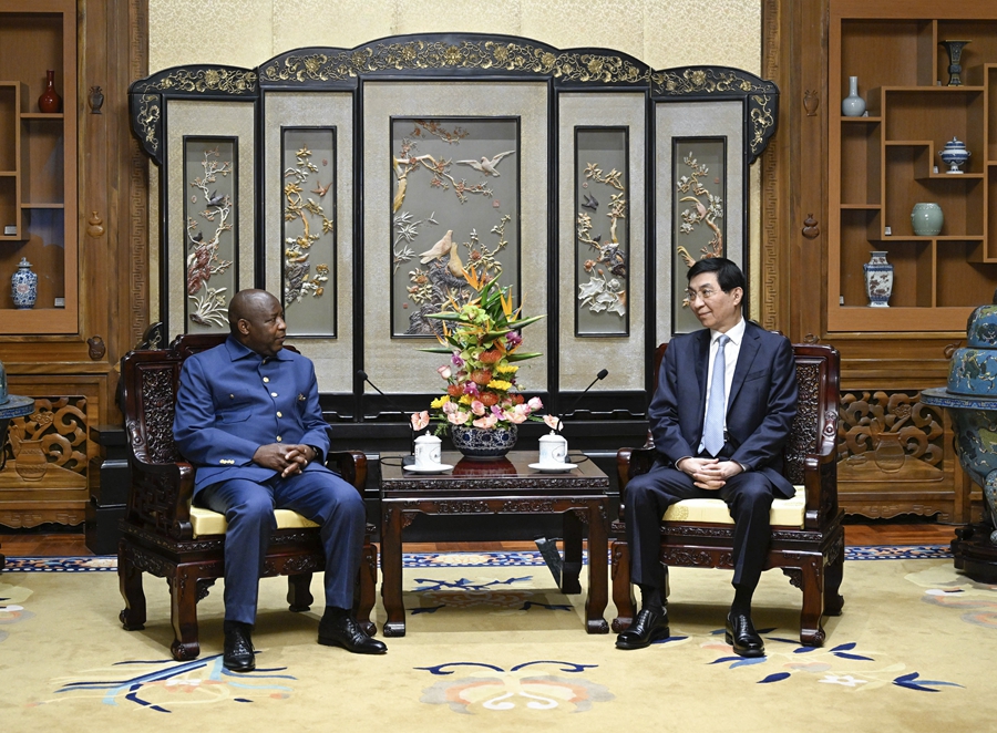 9月6日,全國政協(xié)主席王滬寧在北京會見來華出席中非合作論壇北京峰會的布隆迪總統(tǒng)恩達伊施米耶。新華社記者 申宏 攝