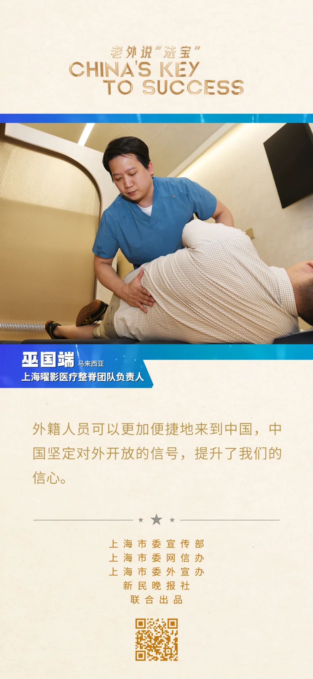 馬來西亞人巫國(guó)端是上海曜影醫(yī)療整脊團(tuán)隊(duì)負(fù)責(zé)人。2014年,他只身來到上海從事醫(yī)療工作,今年是他在這座城市的第十個(gè)年頭。