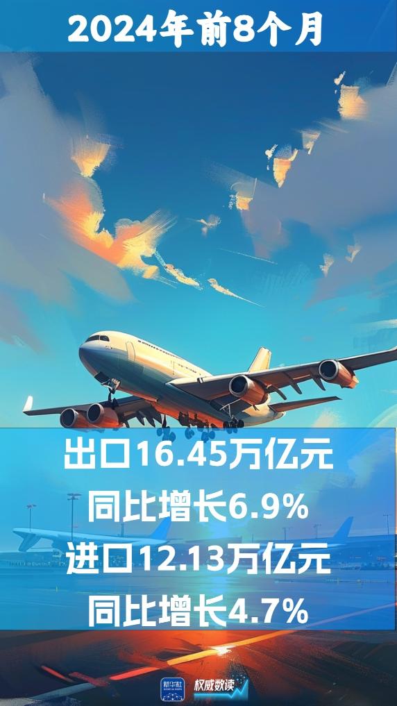 海關總署10日發(fā)布數(shù)據(jù):2024年前8個月,我國貨物貿(mào)易進出口總值28.58萬億元人民幣,同比增長6%。其中,出口16.45萬億元,同比增長6.9%;進口12.13萬億元,同比增長4.7%。