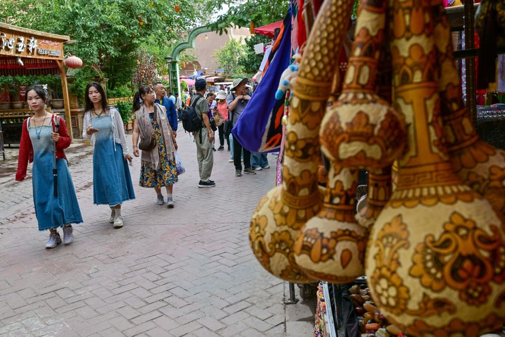 游客在新疆喀什古城景區(qū)觀光游覽。新華社記者 丁磊 攝