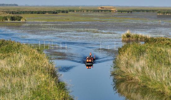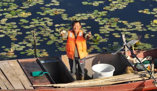 金秋時(shí)節(jié),位于新疆維吾爾自治區(qū)巴音郭楞蒙古自治州博湖縣境內(nèi)的博斯騰湖的螃蟹迎來豐收季,波光粼粼的湖面上,穿梭的漁船與蘆葦、睡蓮、沙漠構(gòu)成一幅生動(dòng)的秋日畫卷。