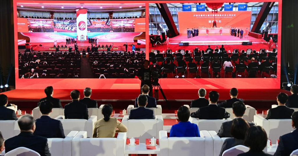 2023年4月10日,在滬深交易所主板注冊(cè)制首批企業(yè)上市儀式北京分會(huì)場(chǎng),與會(huì)嘉賓通過(guò)屏幕實(shí)時(shí)觀看滬深兩地交易所上市儀式。新華社記者李賀 攝