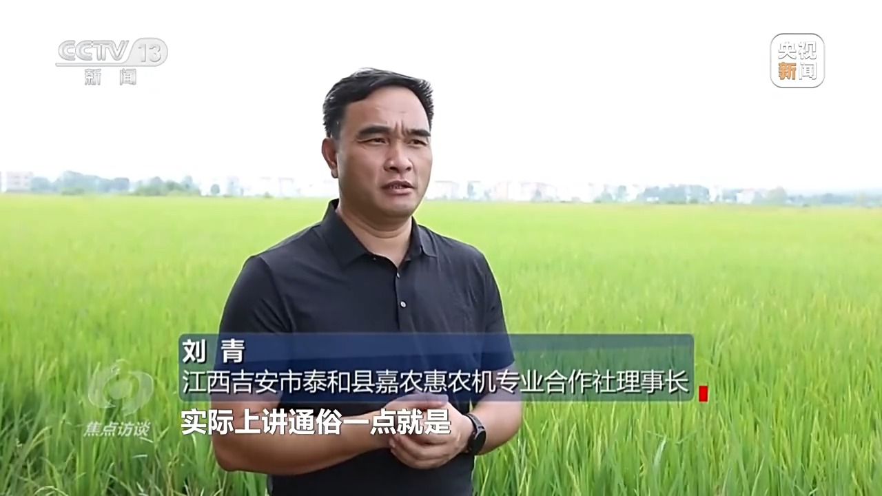 江西吉安市泰和縣嘉農(nóng)惠農(nóng)機(jī)專業(yè)合作社理事長 劉青:實(shí)際上我們就是農(nóng)民的“田間保姆”,農(nóng)民雇傭我們,我們做他的保姆,為他田里面的稻子種植整個(gè)過程,做一個(gè)保姆式服務(wù)。