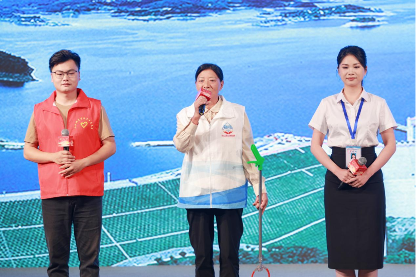“河干凈、水清,喝水的人更放心”,丹江口市六里坪鎮(zhèn)財(cái)神廟村的護(hù)河員秦立萍說(shuō)。秦立萍帶著日常巡河的工具上臺(tái)分享,這個(gè)撿垃圾的夾子,她出門(mén)隨身帶著,看到河岸旁邊的垃圾隨時(shí)撿,她說(shuō)“我們做的是撿垃圾的臟活,但我覺(jué)得也是最‘干凈’的事?!?/p>