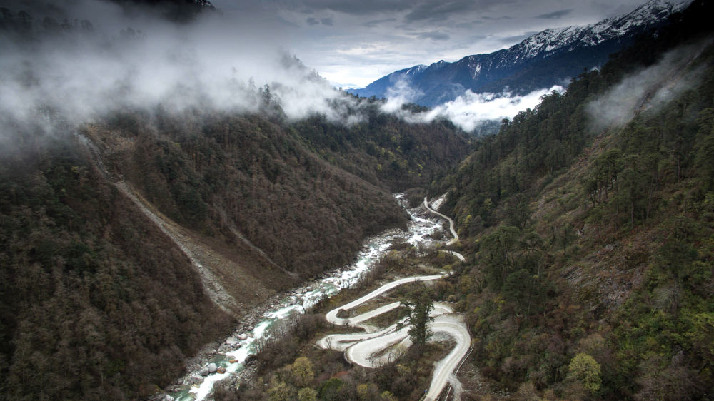 2017年3月30日,西藏墨脫公路上空云霧繚繞。2013年,墨脫公路正式通車,實(shí)現(xiàn)我國“縣縣通公路”。新華社記者 普布扎西 攝