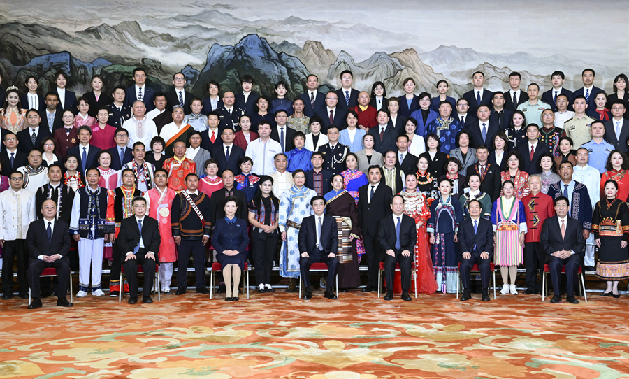 9月29日,中共中央政治局常委、全國政協(xié)主席王滬寧在北京會見全國少數(shù)民族參觀團(tuán)。新華社記者 張領(lǐng) 攝