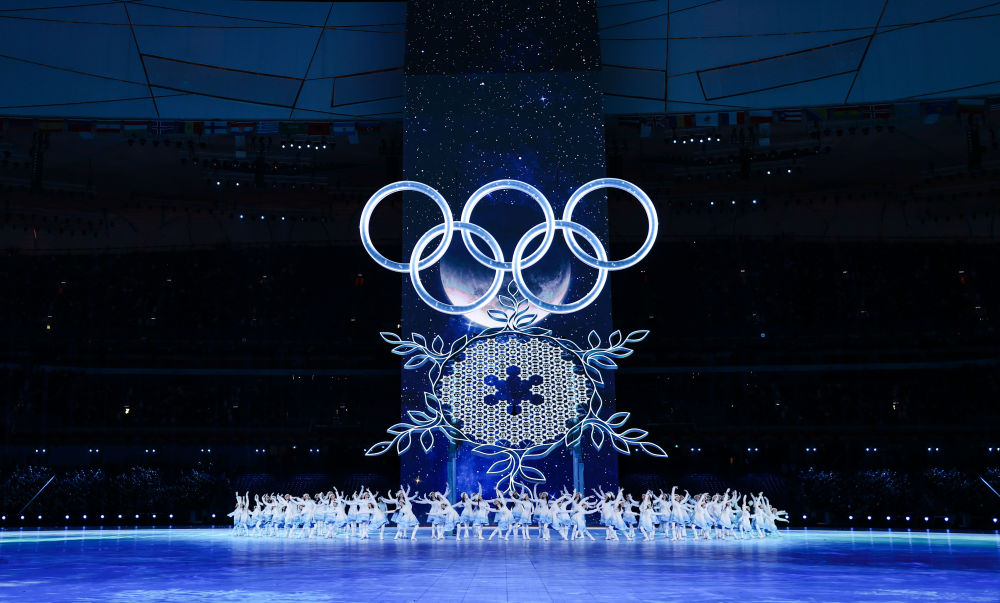 這是2022年2月4日晚在北京國家體育場舉行的第二十四屆冬季奧林匹克運(yùn)動會開幕式上的“構(gòu)建一朵雪花”環(huán)節(jié)。新華社記者 曹燦 攝