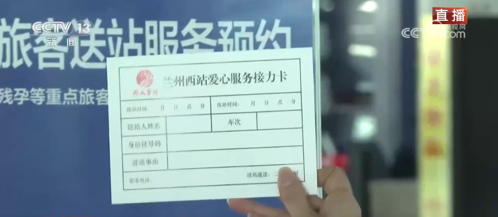 記者手里拿的“愛(ài)心服務(wù)接力卡”是今年車站升級(jí)的服務(wù)。針對(duì)沒(méi)有車票不能接送站的情況,可以在進(jìn)站口說(shuō)明情況之后領(lǐng)取“接力卡”作為通行的憑據(jù),在卡片上寫(xiě)清楚個(gè)人信息、聯(lián)系方式和進(jìn)站事由之后,直接進(jìn)站接送老幼病殘?jiān)械戎攸c(diǎn)旅客,出站時(shí)再把這張接力卡交回工作人員手中,完成閉環(huán)服務(wù)。
