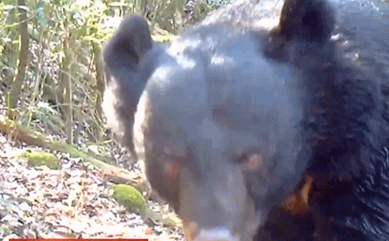 福建龍棲山國家級自然保護(hù)區(qū)里,黑熊看到攝像機(jī),先警惕地湊近聞了聞,再走近仔細(xì)觀察觀察,哎呀,還是不好判斷到底是啥?還是三十六計走為上計吧。