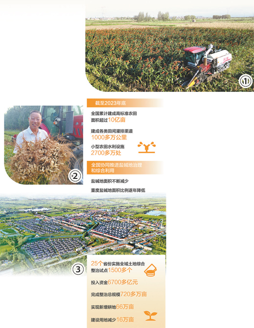黨的十八大以來,高標準農(nóng)田建設(shè)持續(xù)推進,耕地質(zhì)量總體進入持續(xù)改善、穩(wěn)中有升階段,鹽堿地治理和綜合利用協(xié)同推進,全域土地綜合整治試點取得顯著效益,一系列“藏糧于地”政策舉措落實落細,生產(chǎn)向綠、效益向優(yōu),為保障糧食安全打下堅實基礎(chǔ)。