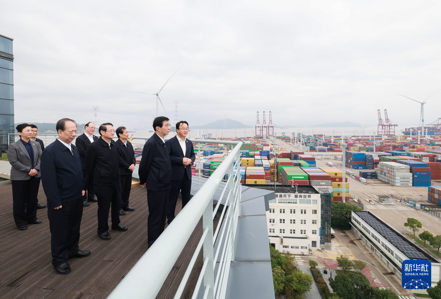 10月15日至17日,中共中央政治局常委、全國政協(xié)主席王滬寧在浙江省寧波市、溫州市調(diào)研。這是16日上午,王滬寧在寧波舟山港穿山港區(qū)了解生產(chǎn)運(yùn)營和自由貿(mào)易試驗(yàn)區(qū)建設(shè)情況。新華社記者 王曄 攝