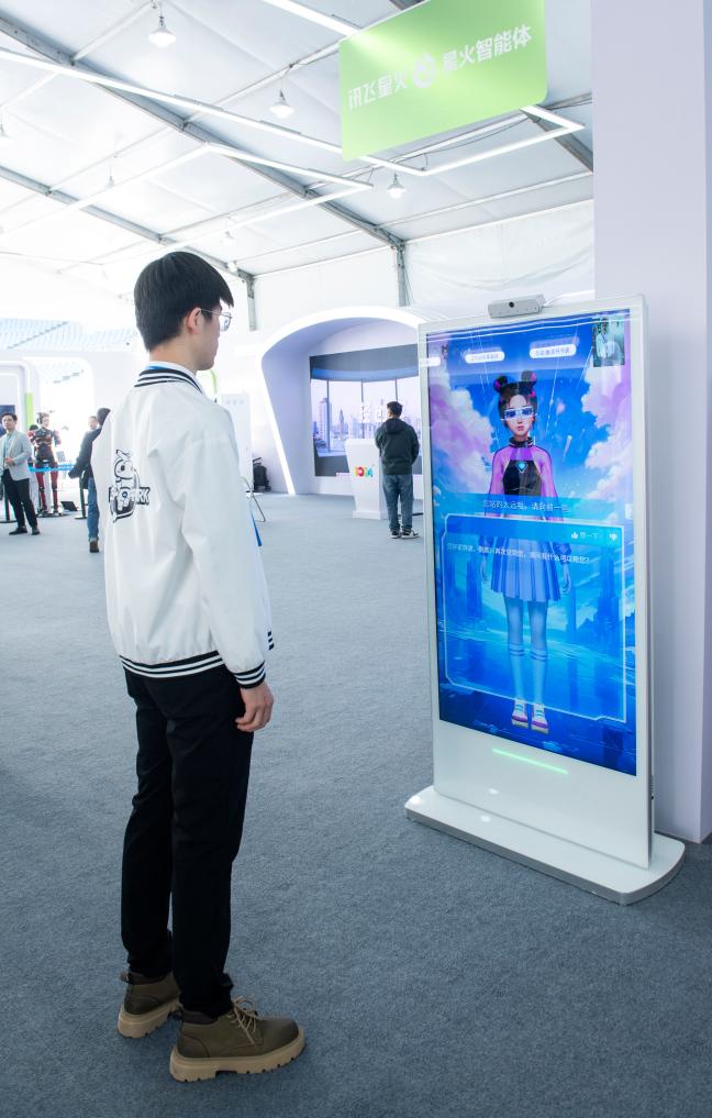 在第七屆世界聲博會(huì)上,虛擬人智能交互機(jī)在和觀眾互動(dòng)交流。新華社記者 傅天 攝
