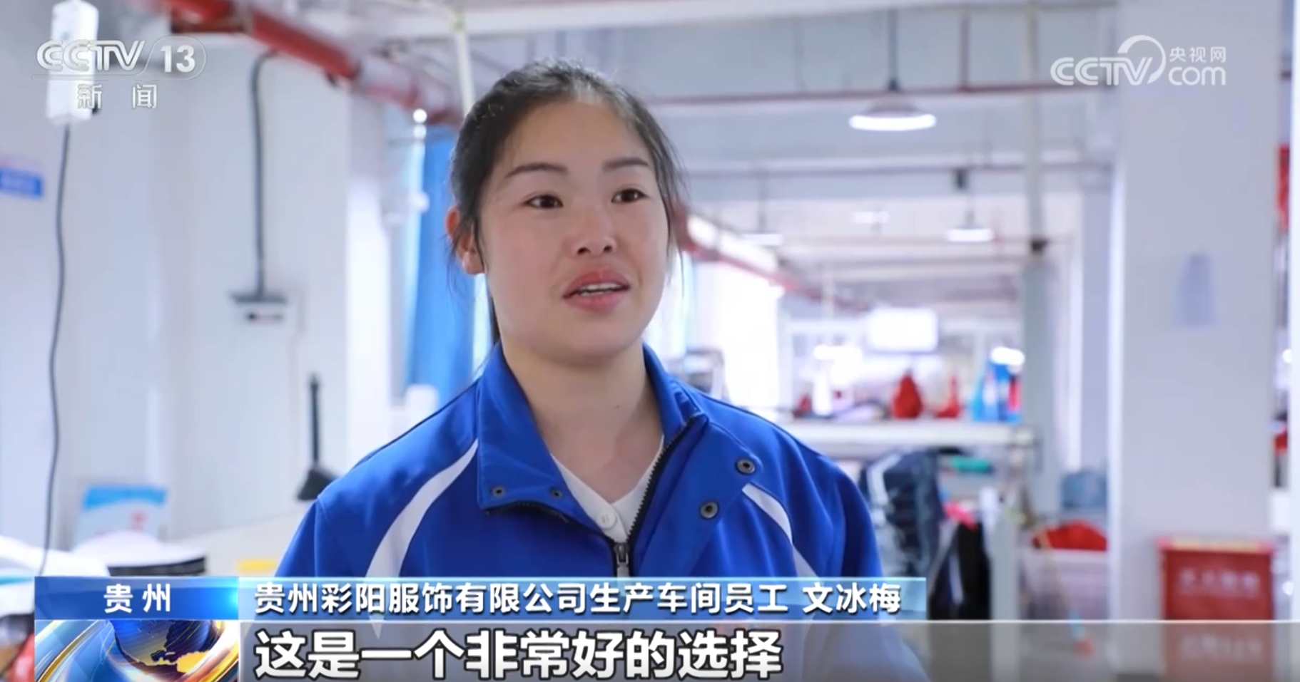 貴州彩陽服飾有限公司生產(chǎn)車間員工文冰梅稱:“平均工資四五千元,十幾年都在外面打工,回到家還有一份穩(wěn)定的收入,對(duì)于我們長期在外面打工的人來說,這是一個(gè)非常好的選擇?!?/p>