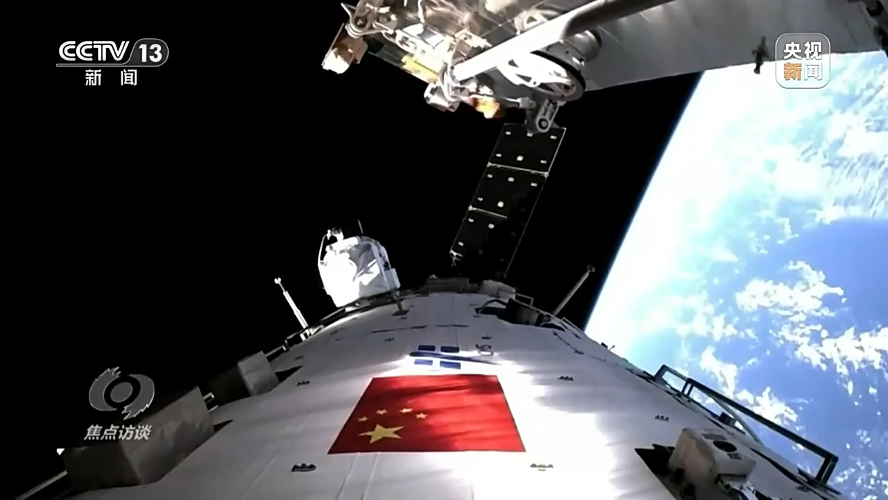 航天員 王浩澤:出艙的任務主要是對空間站進行防護。因為在空間里面運行,空間站它有可能會受到微流星、空間碎片干擾,甚至是沖擊,所以我們要對艙外的一些重要管路、設備進行防護。
