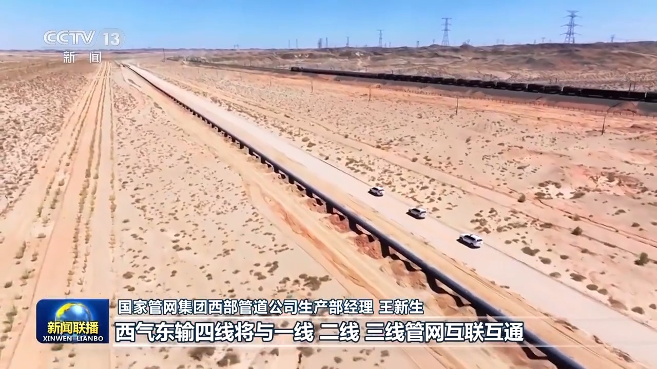 國家管網(wǎng)集團西部管道公司生產(chǎn)部經(jīng)理 王新生:西氣東輸四線將與一線、二線、三線管網(wǎng)互聯(lián)互通,西氣東輸管道系統(tǒng)年輸送能力,將從770億立方米提高到920億立方米,日輸送能力達(dá)到2.6億立方米。