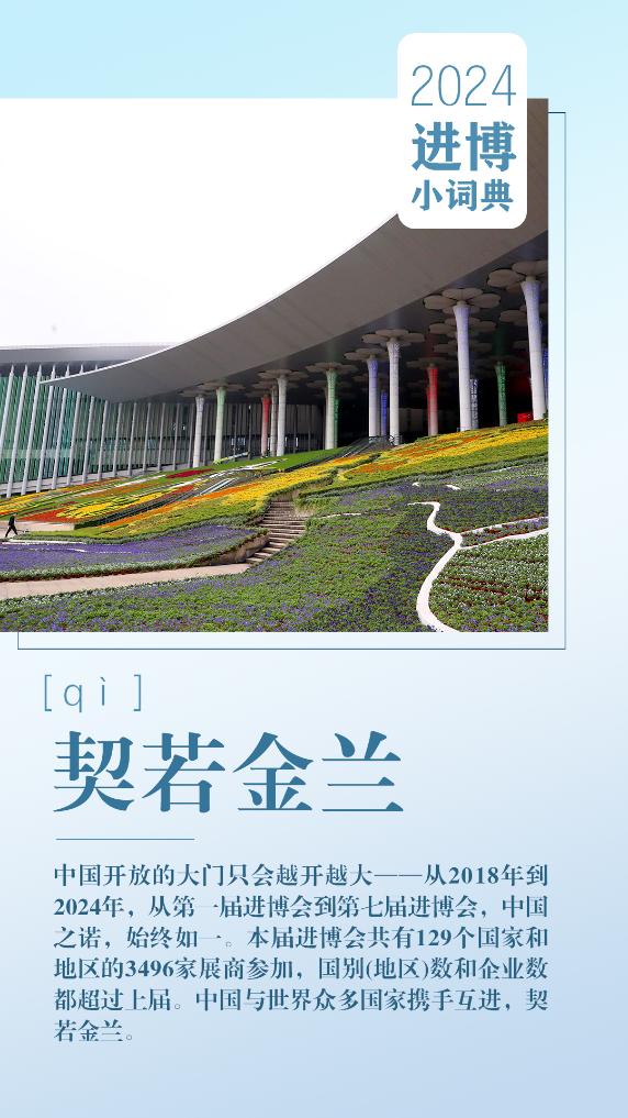 中國(guó)開放的大門只會(huì)越開越大——從2018年到2024年,從第一屆進(jìn)博會(huì)到第七屆進(jìn)博會(huì),中國(guó)之諾,始終如一。本屆進(jìn)博會(huì)共有129個(gè)國(guó)家和地區(qū)的3496家展商參加,國(guó)別(地區(qū))數(shù)和企業(yè)數(shù)都超過(guò)上屆。中國(guó)與世界眾多國(guó)家攜手互進(jìn),契若金蘭。