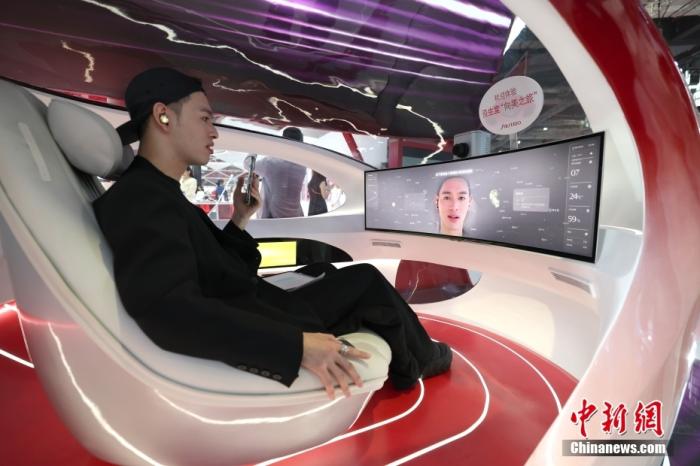 11月6日,參觀者在消費(fèi)品展區(qū)資生堂展位“美時(shí)美刻”體驗(yàn)艙檢測(cè)膚質(zhì)。第七屆中國(guó)國(guó)際進(jìn)口博覽會(huì)于11月5日至10日在上海舉行。中新社記者 富田 攝
