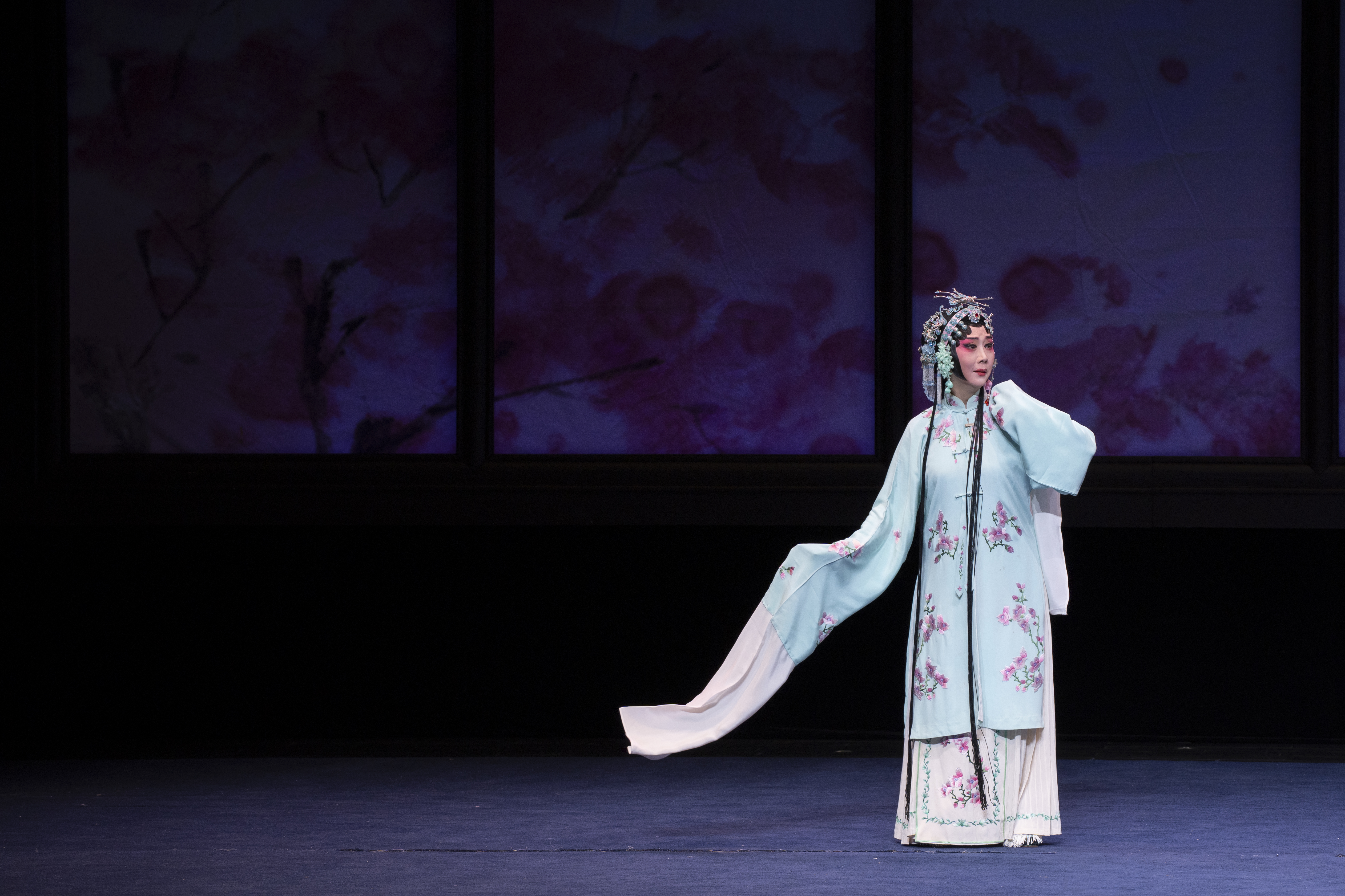 從年齡上看,這五位“杜麗娘”的扮演者年齡跨度從36歲到82歲,覆蓋了老中青三代,尤其是以《離魂》一折壓軸出場(chǎng)的梁谷音,她不僅是本次演出中最年長(zhǎng)的演員,更是昆曲界的一位傳奇人物,師承沈傳芷、張傳芳、朱傳茗等“傳”字輩名家,在六旦領(lǐng)域造詣深厚,當(dāng)晚參與演出的多位演員均為她的得意門生??梢哉f這次演出不僅是對(duì)《牡丹亭》這部經(jīng)典劇目的致敬,也是對(duì)昆曲藝術(shù)傳承的一種展示。