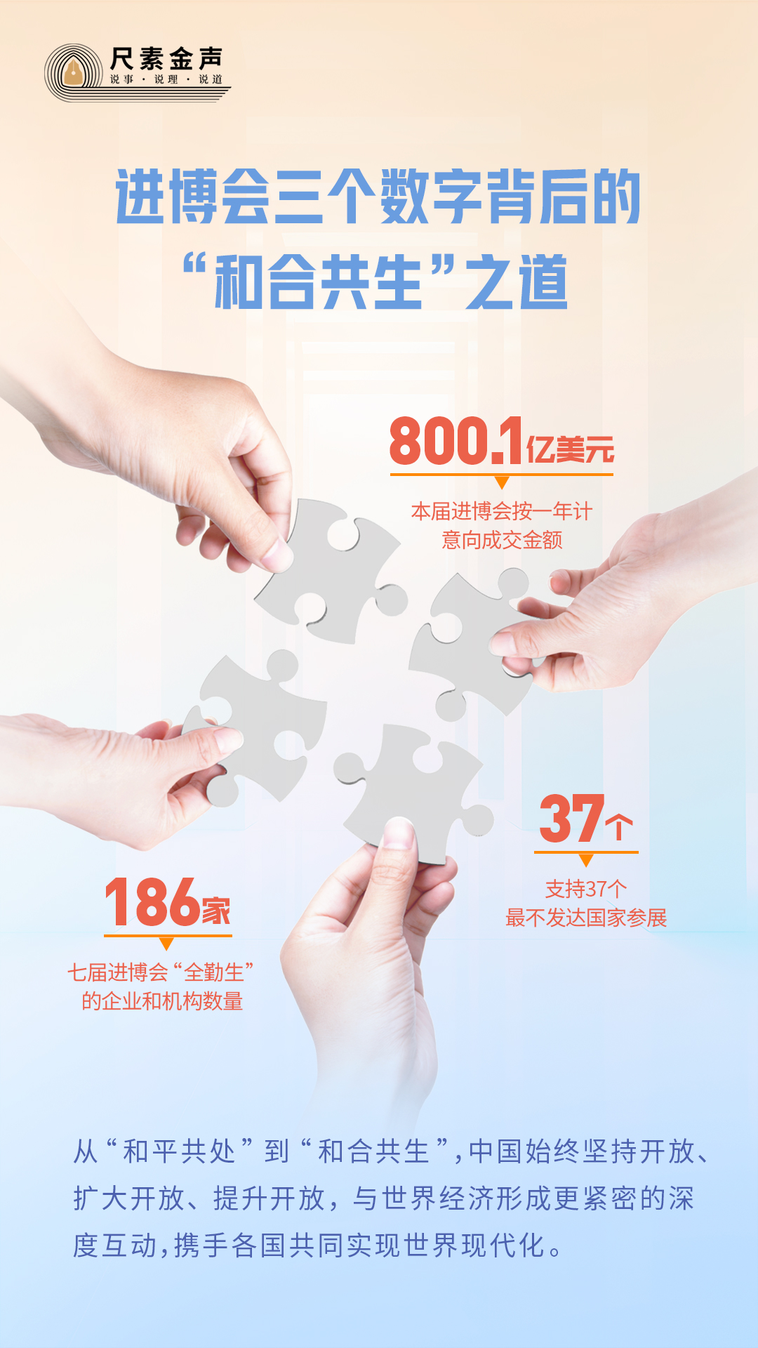在進博會,這些數(shù)字生動說明,從“和平共處”到“和合共生”,中國始終堅持開放、擴大開放、提升開放,與世界經(jīng)濟形成更緊密的深度互動,攜手各國共同實現(xiàn)世界現(xiàn)代化。
