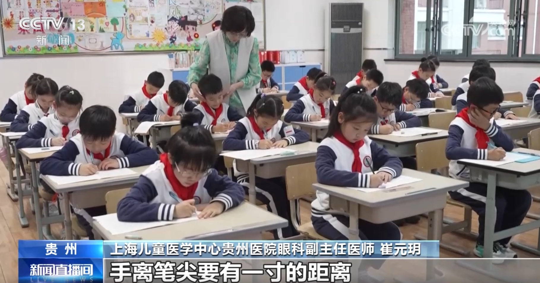 上海兒童醫(yī)學中心貴州醫(yī)院眼科副主任醫(yī)師崔元玥稱:“我們特別強調(diào)孩子學習的時候坐姿要端正,手離筆尖要有一寸的距離,胸口離桌緣要有一拳的距離,眼睛離桌面要有一尺的距離。”
