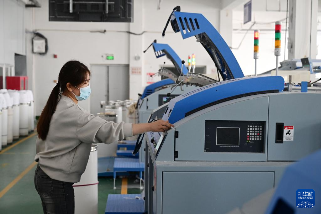 10月25日,工作人員在安徽省天助紡織科技集團(tuán)股份有限公司的生產(chǎn)車間里工作。新華社記者 周牧 攝