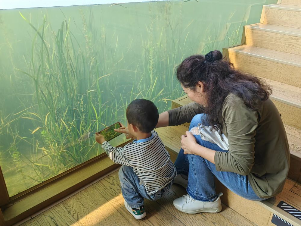 興隆湖畔的湖畔書(shū)店,人們透過(guò)書(shū)店內(nèi)的玻璃幕墻,可以看到湖底的景象。新華社記者董小紅 攝