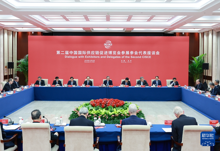 11月25日,國務(wù)院總理李強(qiáng)在北京同第二屆中國國際供應(yīng)鏈促進(jìn)博覽會參展參會企業(yè)代表座談。新華社記者 王曄 攝