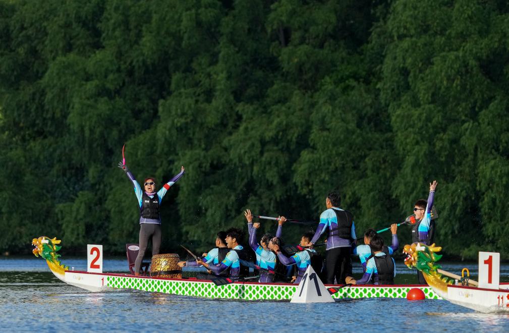三亞河面上,鼓聲震天、劃槳如飛,加油吶喊聲此起彼伏。經(jīng)過三天的角逐,龍舟21個項目的爭奪圓滿落幕,貴州隊和廣東隊均斬獲多個一等獎。