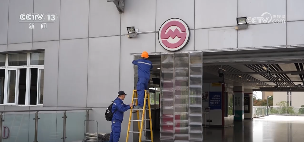 在上海軌道交通11號線白銀路站1號口,物業(yè)師傅們正在安裝擋風(fēng)門簾。檢修人員也第一時間排查空調(diào)等設(shè)備,并做好防凍應(yīng)對措施。