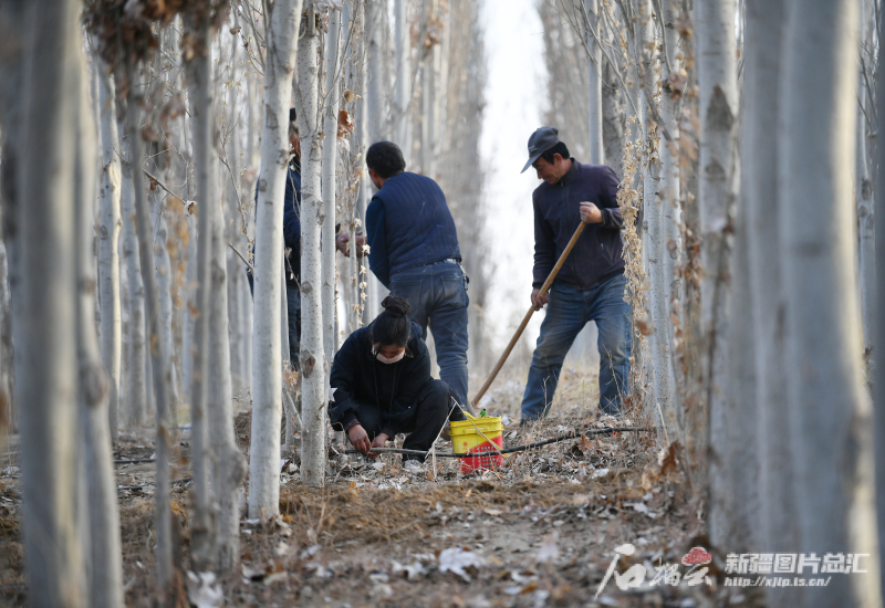 11月28日,護(hù)林員在葉城縣20萬(wàn)畝生態(tài)林基地管護(hù)白楊樹(shù)。