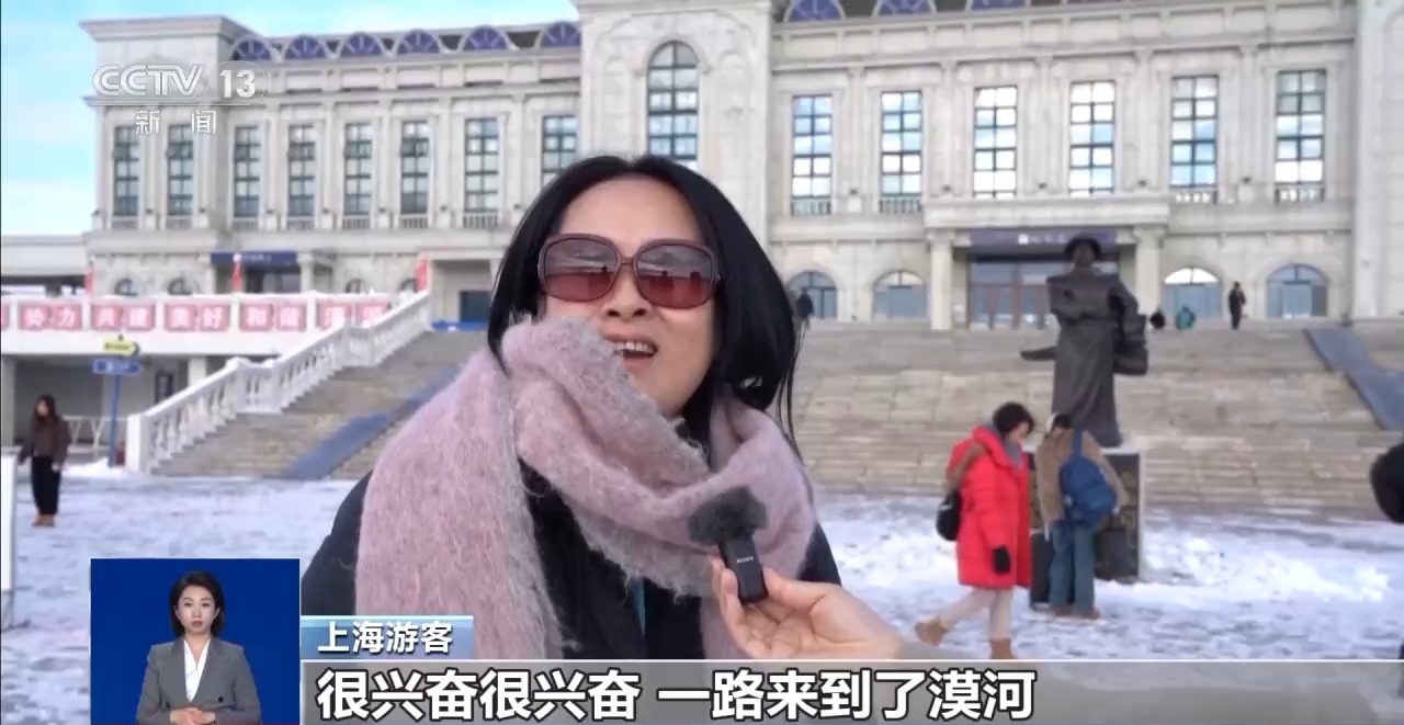 上海游客:坐上雪國列車,看著雪國的風光。很興奮,一路來到漠河,也是我最期待,最向往的一個地方。