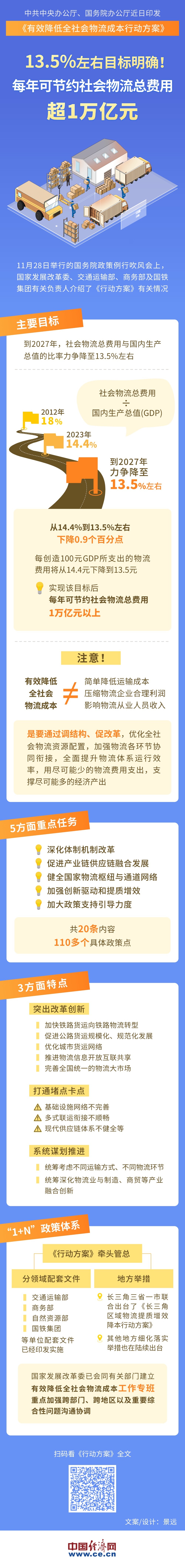 【圖解】13.5%左右目標(biāo)明確!每年可節(jié)約社會物流總費用超1萬億元