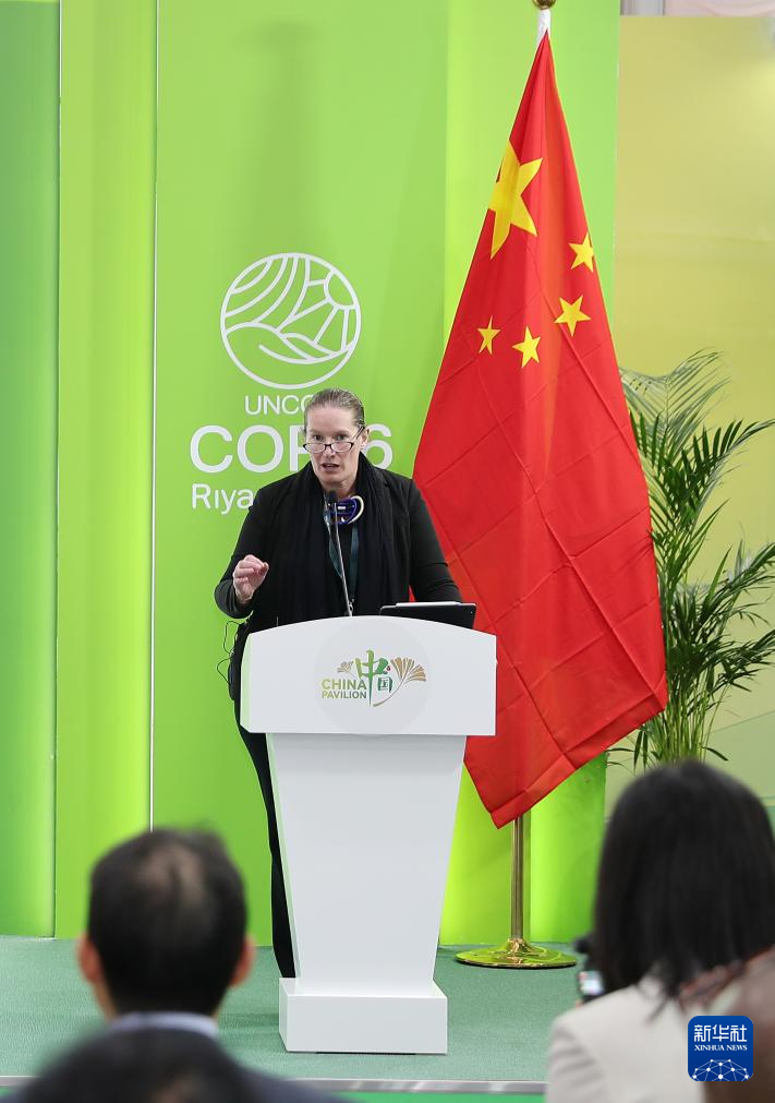 12月4日,在沙特阿拉伯利雅得,世界銀行全球環(huán)境局局長(zhǎng)瓦萊麗·?;凇堵?lián)合國防治荒漠化公約》第十六次締約方大會(huì)(COP16)中國館舉辦的邊會(huì)上發(fā)言。新華社記者 王東震 攝