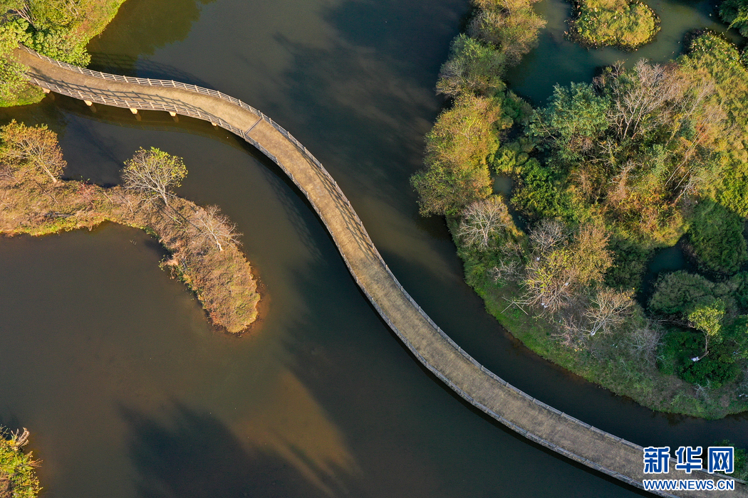 這是長汀汀江國家濕地公園冬日景觀。如今這里是國家4A級旅游景區(qū)。經(jīng)過30多年的生態(tài)治理,昔日水土流失重災(zāi)區(qū)已成為風(fēng)光秀麗、林果連片的生態(tài)旅游勝地(無人機(jī)照片)。新華網(wǎng) 肖和勇 攝
