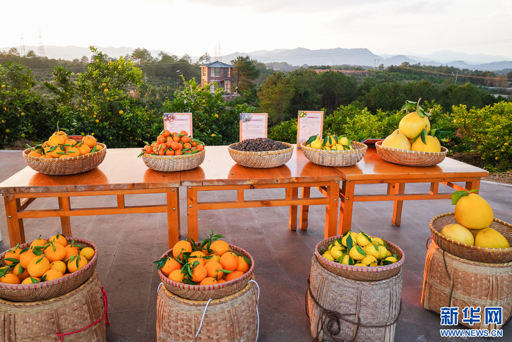 長汀縣三洲鎮(zhèn)豐盈美麗生態(tài)農(nóng)場面積3200多畝,已種植36個果樹品種,這是當(dāng)季水果展示。新華網(wǎng) 肖和勇 攝