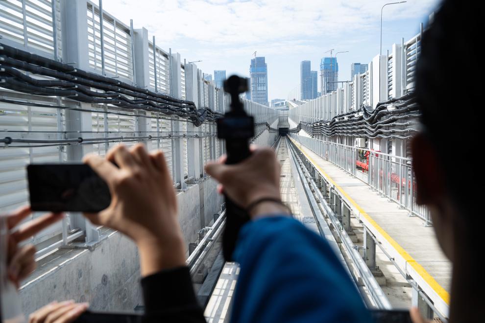 乘客乘坐澳門(mén)輕軌首班車前往橫琴站(2024年12月2日攝)。新華社發(fā) (張金加攝)