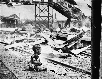 1937年8月28日,日軍轟炸上海南站,鐵軌邊一個(gè)滿身是血的幼兒嚎啕大哭。