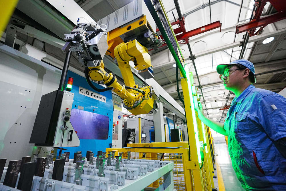 7月23日,在哈電集團(tuán)哈爾濱汽輪機(jī)廠有限責(zé)任公司葉片加工智能化車間,工作人員在觀察智能機(jī)械臂運(yùn)行情況。近年來,東北三省加大力度推進(jìn)傳統(tǒng)制造業(yè)數(shù)字化改造,依靠科技創(chuàng)新“第一動力”,聚焦“卡脖子”領(lǐng)域,讓傳統(tǒng)產(chǎn)業(yè)增“智”提“質(zhì)”。(新華社記者 王建威 攝)