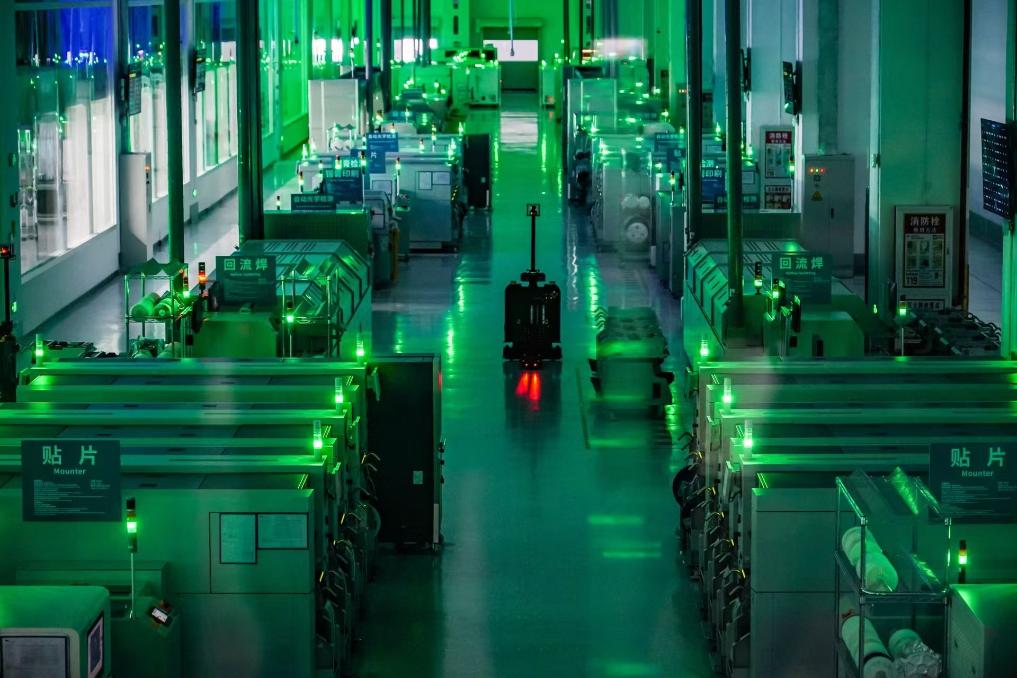 無數(shù)綠燈依次閃爍,少量工人巡檢其間……在這座達(dá)到業(yè)界標(biāo)桿水平的零碳智造工廠,“黑燈”模式下運(yùn)作的電腦主板生產(chǎn)線繁忙卻有序。“我們基于‘端—邊—云—網(wǎng)—智’新IT技術(shù)架構(gòu),使生產(chǎn)效率提升200%。猜猜看,現(xiàn)在下線一塊主板、一臺(tái)筆記本能有多快?”聯(lián)想天津工廠廠長(zhǎng)于小建給出的答案是,“9秒!”