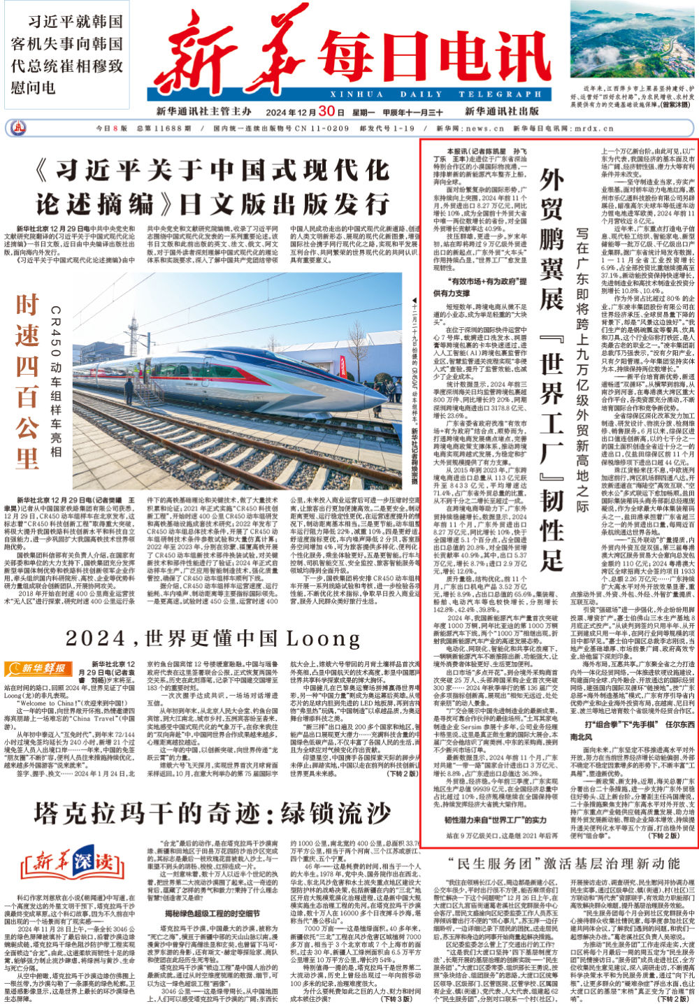 ——“五外聯(lián)動(dòng)”擴(kuò)量提質(zhì),內(nèi)外貿(mào)內(nèi)外資互促雙強(qiáng)。第三屆粵港澳大灣區(qū)服務(wù)貿(mào)易大會(huì)意向總發(fā)包金額約110億元;2024粵港澳大灣區(qū)全球招商大會(huì)簽約項(xiàng)目1933個(gè)、總額2.26萬億元……廣東持續(xù)擴(kuò)大高水平對(duì)外開放效果顯著,重點(diǎn)推動(dòng)外貿(mào)、外資、外包、外經(jīng)、外智擴(kuò)量提質(zhì)、互聯(lián)互動(dòng)。