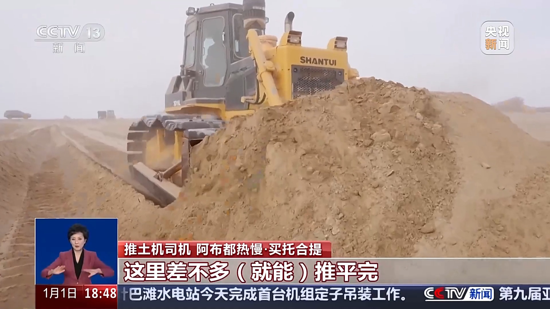 推土機(jī)司機(jī) 阿布都熱慢·買托合提:干了差不多一個(gè)月,然后再干三四天,這里差不多就能推平完。