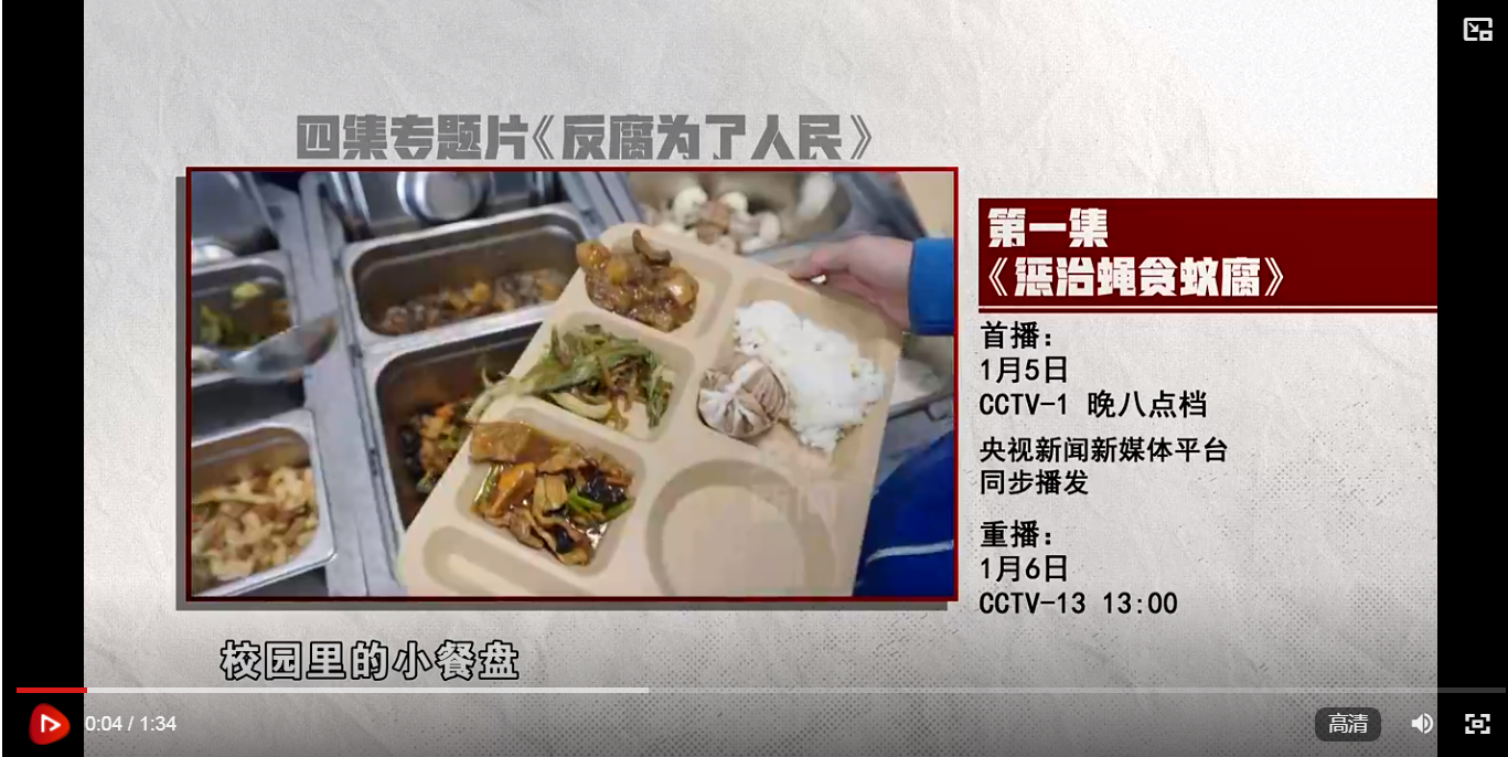 習(xí)近平總書(shū)記強(qiáng)調(diào),凡是群眾反映強(qiáng)烈的問(wèn)題都要嚴(yán)肅認(rèn)真對(duì)待,凡是損害群眾利益的行為都要堅(jiān)決糾正。二十屆中央紀(jì)委三次全會(huì)上,習(xí)近平總書(shū)記對(duì)整治群眾身邊不正之風(fēng)和腐敗問(wèn)題作出重要指示,要求懲治蠅貪蟻腐,讓群眾有更多獲得感。中央紀(jì)委國(guó)家監(jiān)委堅(jiān)決貫徹黨中央的決策部署,在全國(guó)部署開(kāi)展群眾身邊不正之風(fēng)和腐敗問(wèn)題集中整治。電視專題片《反腐 為了人民》第一集《懲治蠅貪蟻腐》,講述紀(jì)檢監(jiān)察機(jī)關(guān)聚焦群眾反映強(qiáng)烈問(wèn)題,推動(dòng)開(kāi)展校園餐、高標(biāo)準(zhǔn)農(nóng)田建設(shè)、住房保障和安居工程等整治工作,讓群眾從一個(gè)個(gè)具體問(wèn)題的解決中感受到整治成果,不斷增強(qiáng)獲得感、幸福感、安全感。央視綜合頻道1月5日晚8點(diǎn)檔播出,央視新聞新媒體平臺(tái)同步播發(fā),敬請(qǐng)關(guān)注。